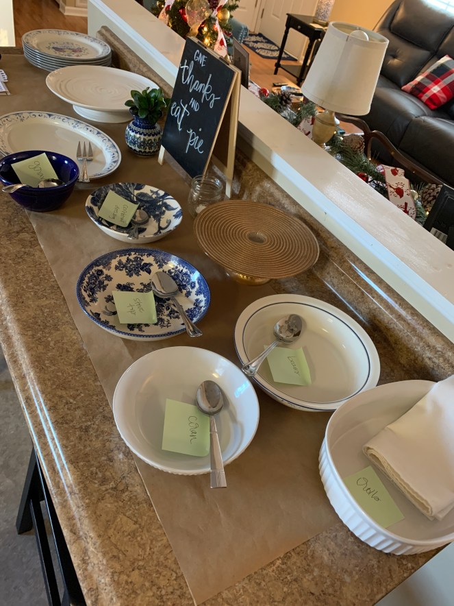 For some reason, this is such a helpful step in my planning process! The day before Thanksgiving, I decide what bowls I want to use for serving each thing on my menu. I set them out on the counter and put a post-it note on each dish so I don’t have to think about what goes where during that last minute crunch time.