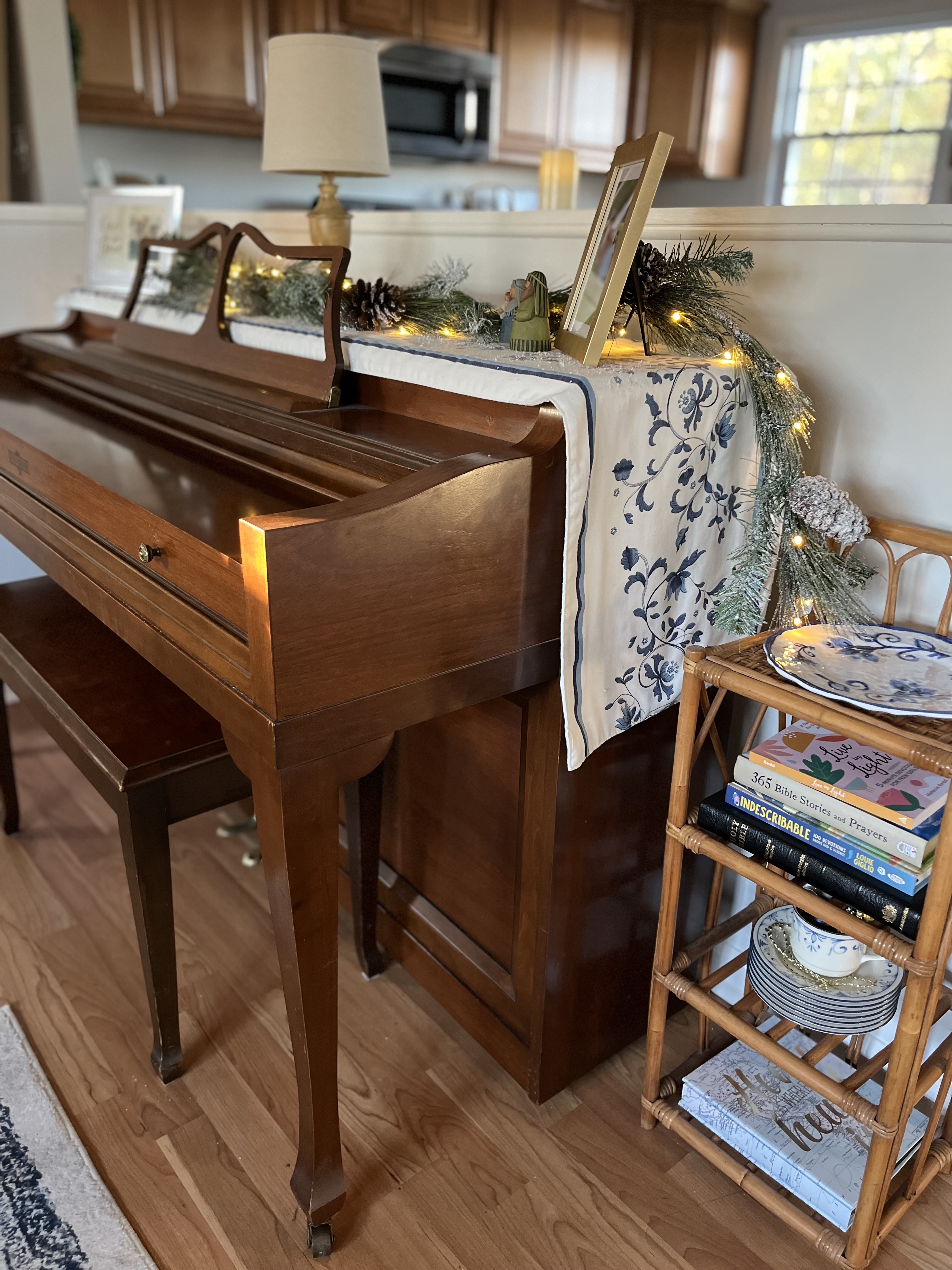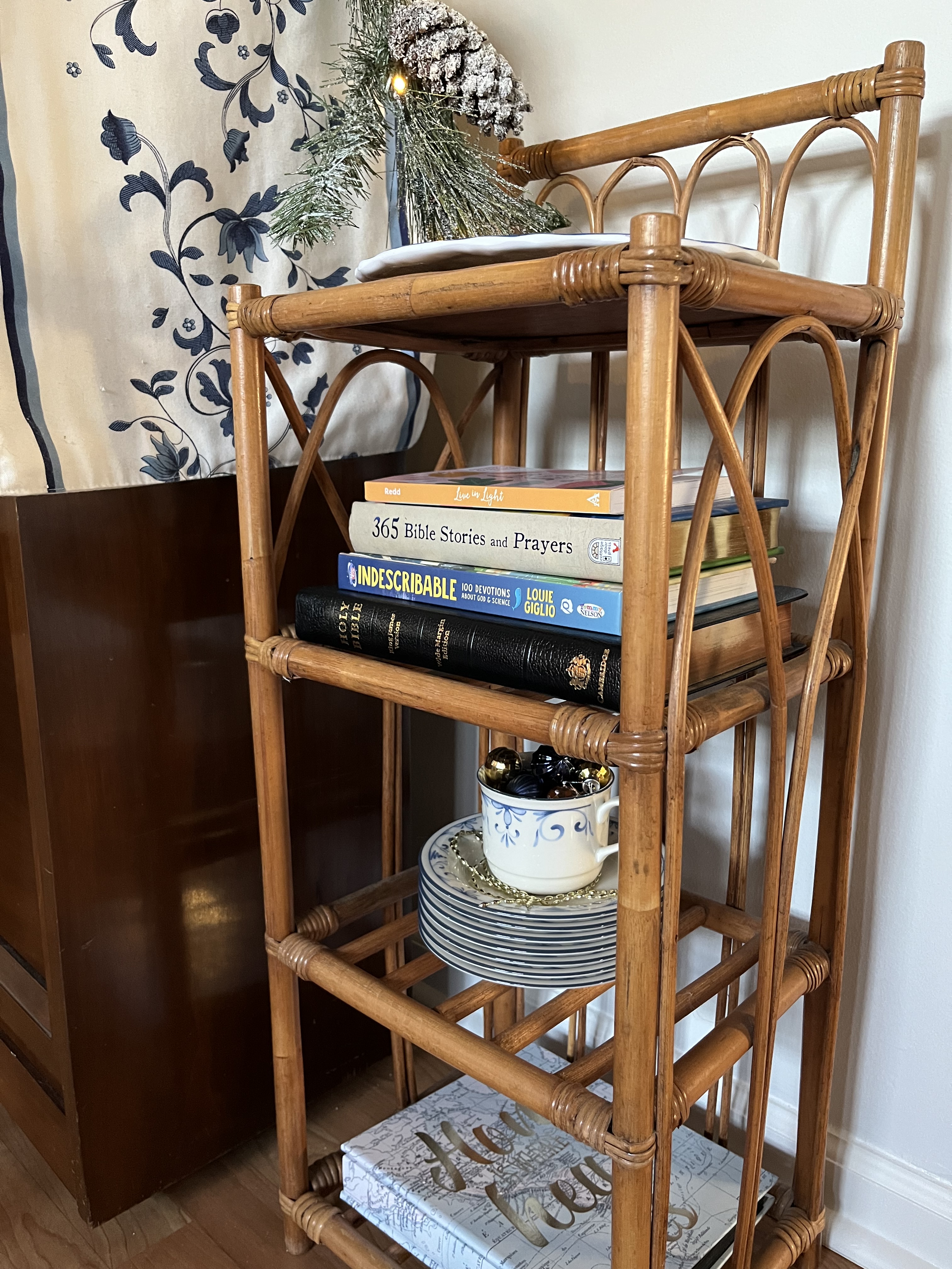 Since shooting these pictures, I’ve added a basket on the top of this stand for collecting Christmas cards as they come in the mail.
