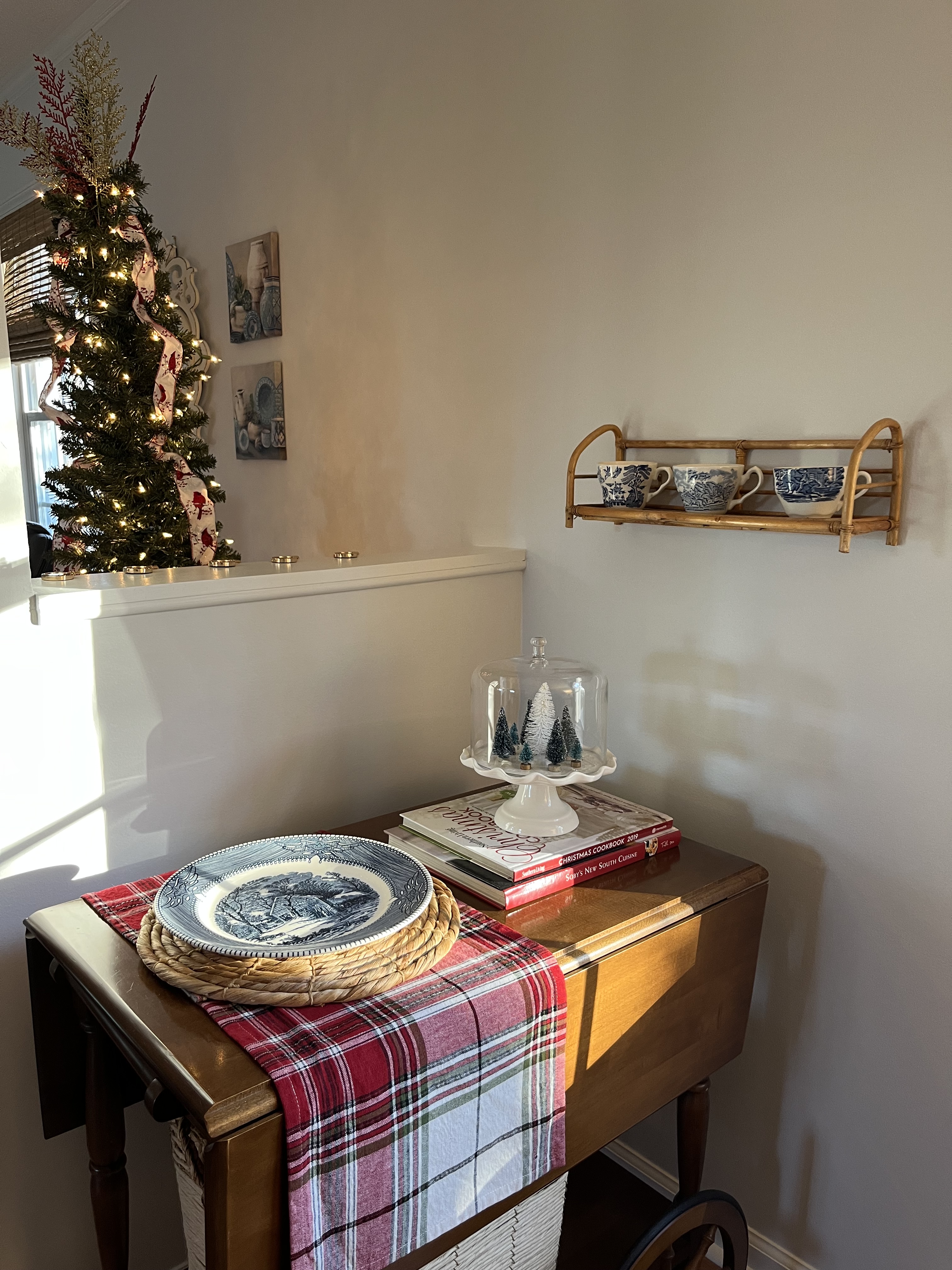 Just outside the laundry room is this plate rack that features my Radko plates. I’ve had those since I set up house in my first apartment.