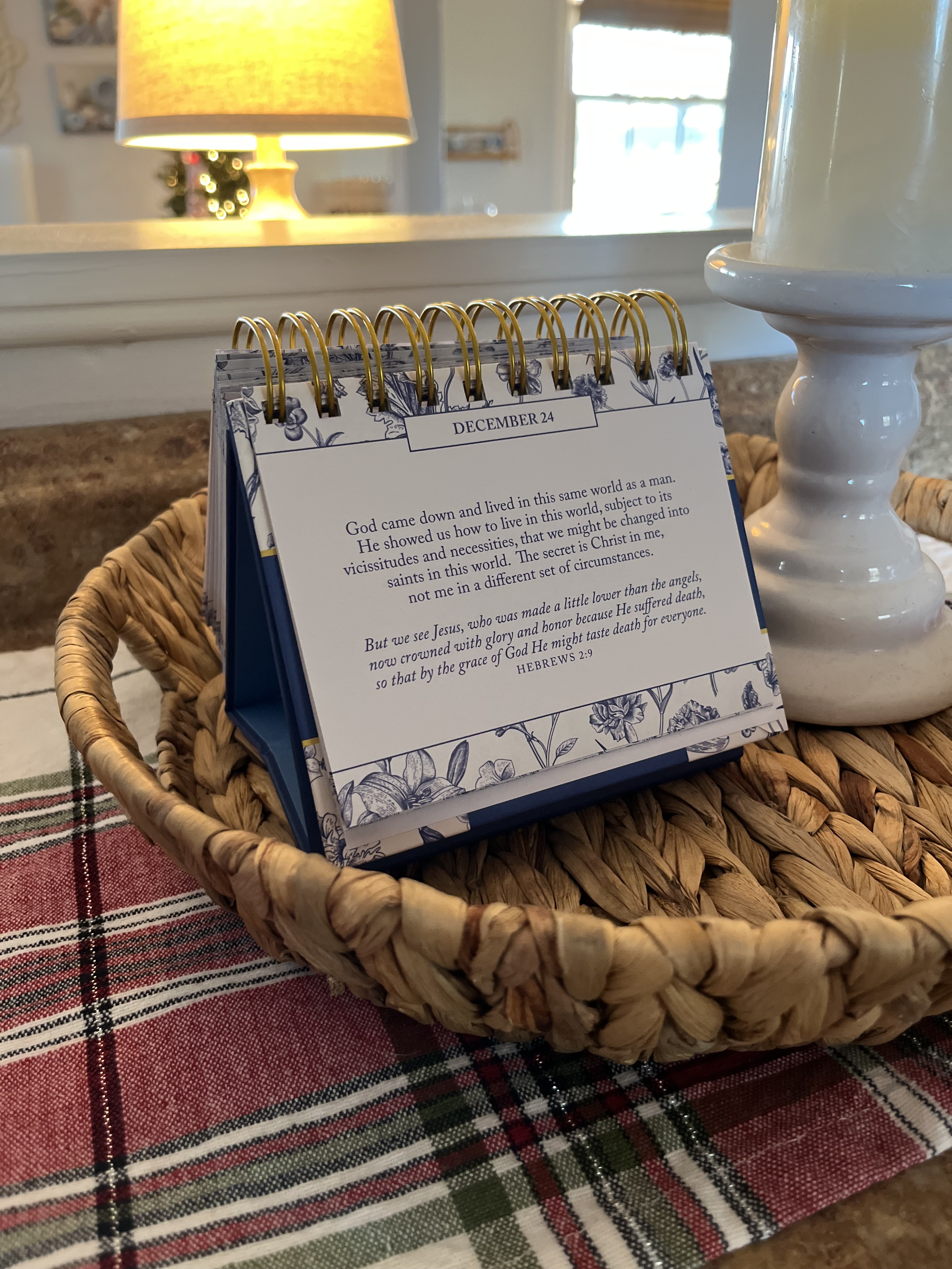 I love this quote from the December 24 page of my Elisabeth Elliot Daily Calendar. “God came down and lived in this same world as a man. He showed us how to live in this world, subject to its vicissitudes and necessities, that we might be changed into saints in this world. The secret is Christ in me, not me in a different set of circumstances.”