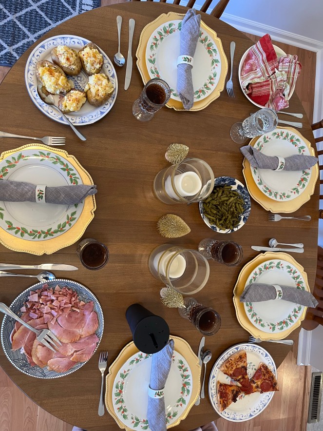 2. Celebrating with you!! I’m so touched by the pizza and cut up food at Christmas dinner. 🥲 Merry Christmas, and best wishes for a joyous new year!