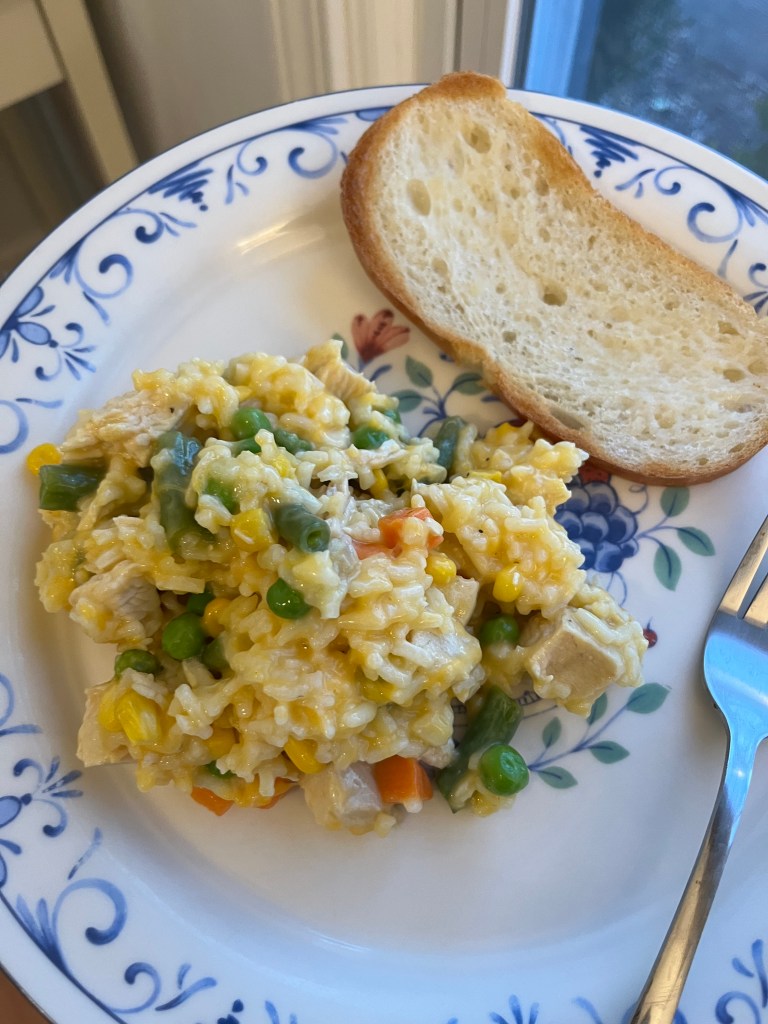Chicken and Rice with Mixed Veggies/Fresh Bread/Chocolate Chip Cookies