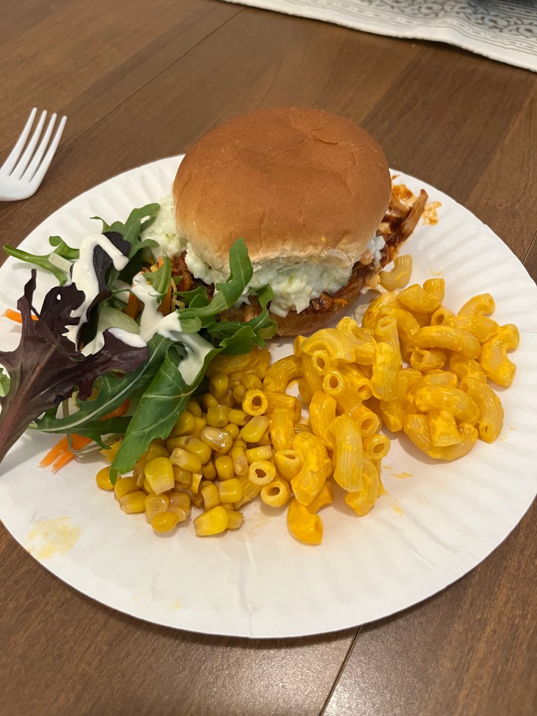 BBQ Chicken Sandwiches/Slaw/Tossed Salad/Corn/Mac and Cheese/BBQ Chips/Brownies