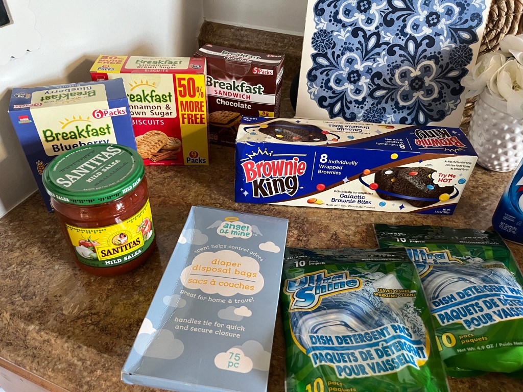 - Snacks and individually wrapped desserts: great for keeping in the car for after school or the days when errands run long and people are hangry. I look for 6 or more in each package and compare prices to Aldi and Dollar General.