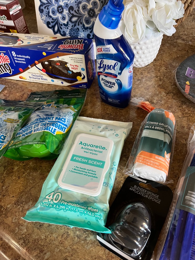 - Trash bags – I like their small bags for bathroom and bedroom trash cans. I buy my kitchen trash bags at Aldi.