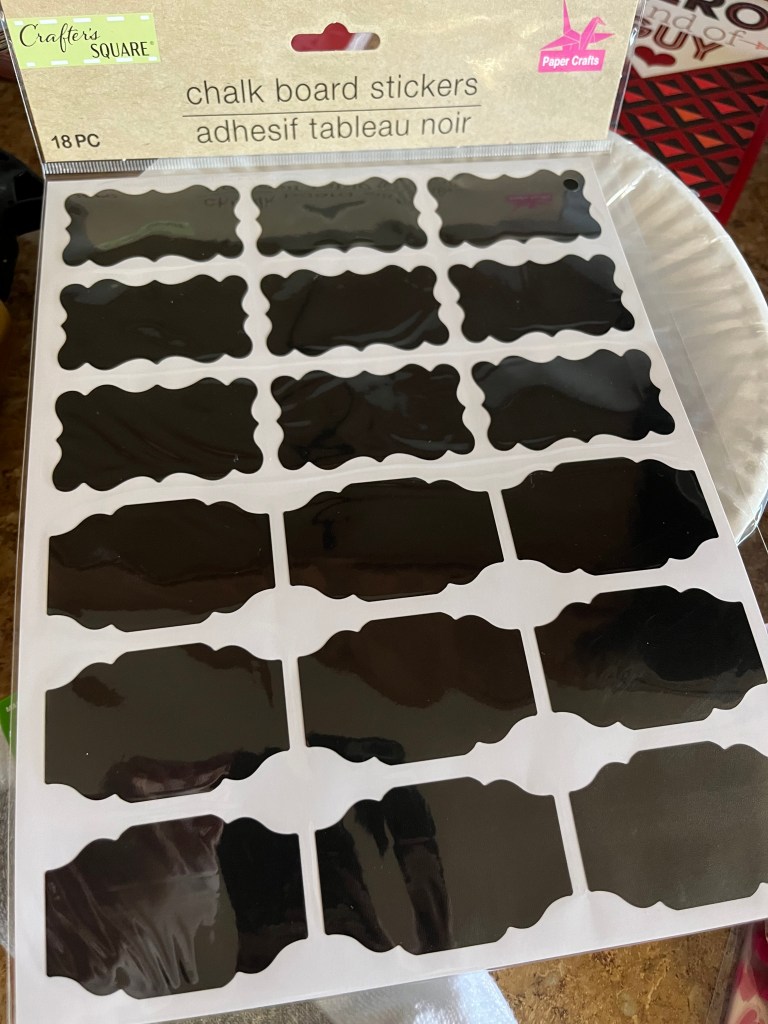 - Such a great deal – 18 chalkboard labels for $1.25! I use these on my cereal containers along with chalk markers from Dollar Tree.