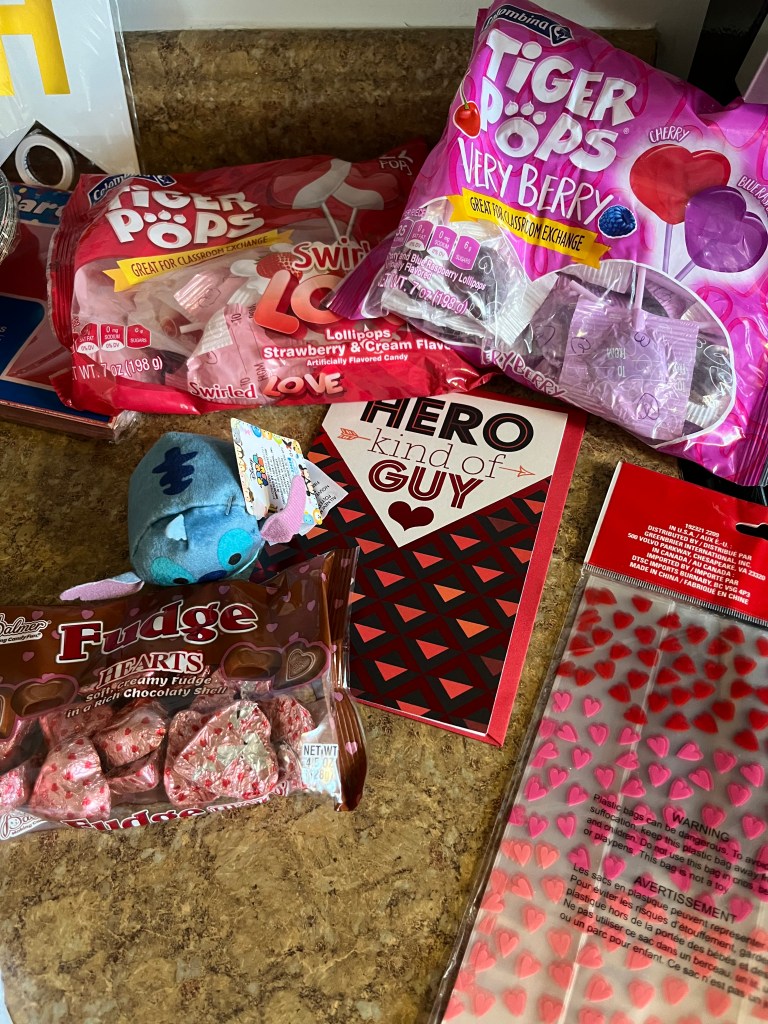 - Seasonal gifts and treats – I stocked up on Valentine’s Day candy, treat bags, cards, and individually wrapped treats for classroom exchange or lunch boxes. The only trick with this is that you have to shop early. If you see it and need it, grab it then. There’s no guarantee you’ll see that item again.