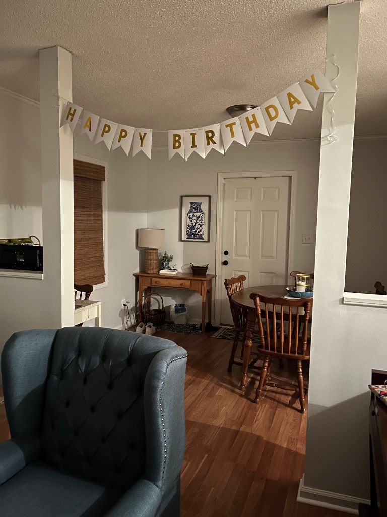 I took this picture early in the morning after I hung the banner – I wish I could show you the picture with the one we were celebrating!