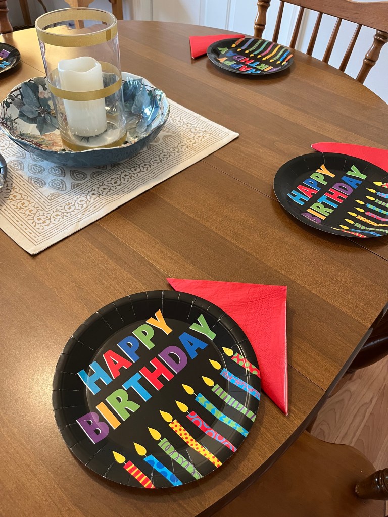 I shared our Valentine’s Day celebrations here, and we also celebrated our middle kiddo’s birthday. The birthday fell on a Sunday, so we did gifts at breakfast, out to Mr. Salsa for lunch, and back home for birthday dessert and ice cream! I picked up some fun party decor at Dollar Tree and I think they felt very celebrated.