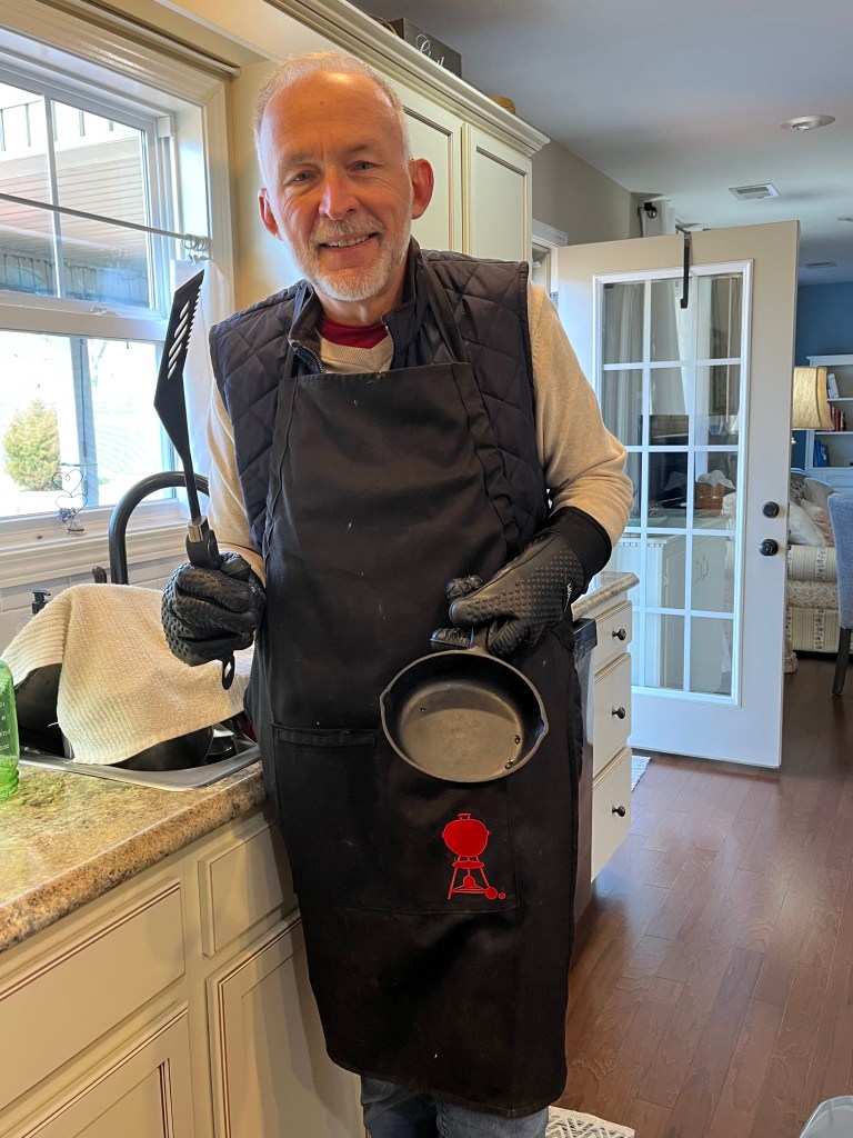 My Dad does a lot of grilling year round, so I sent him these grilling gloves for his birthday in January. He said they are perfect (he has the extra large) and sent me this picture of them in use! These would be a great Father’s Day gift, too.