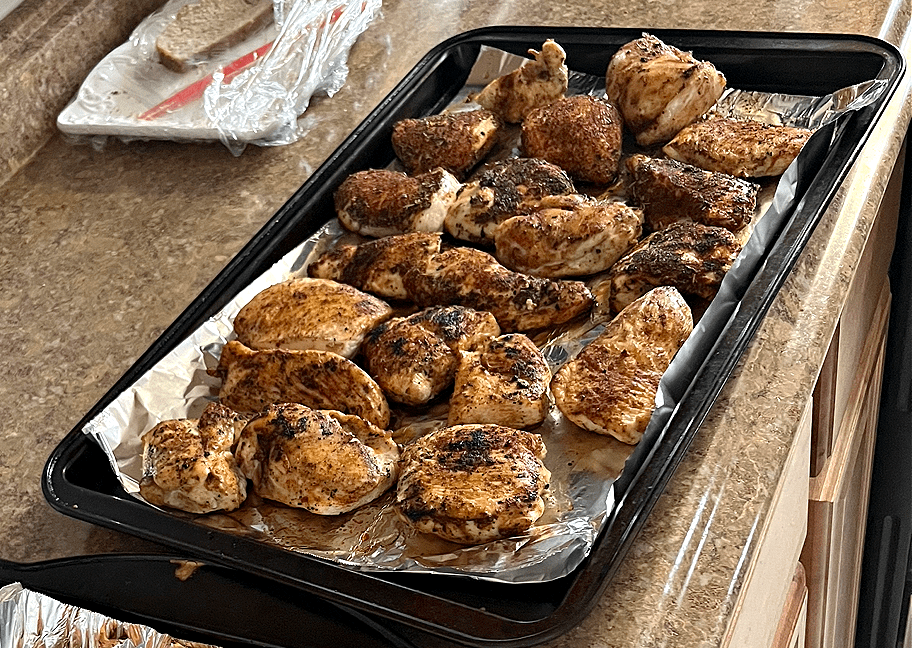 Allow the chicken to cool completely. You can leave the filets whole or slice them, however you prefer. Arrange in a single layer on a baking sheet and place in the freezer for about 30 minutes (flash freezing).