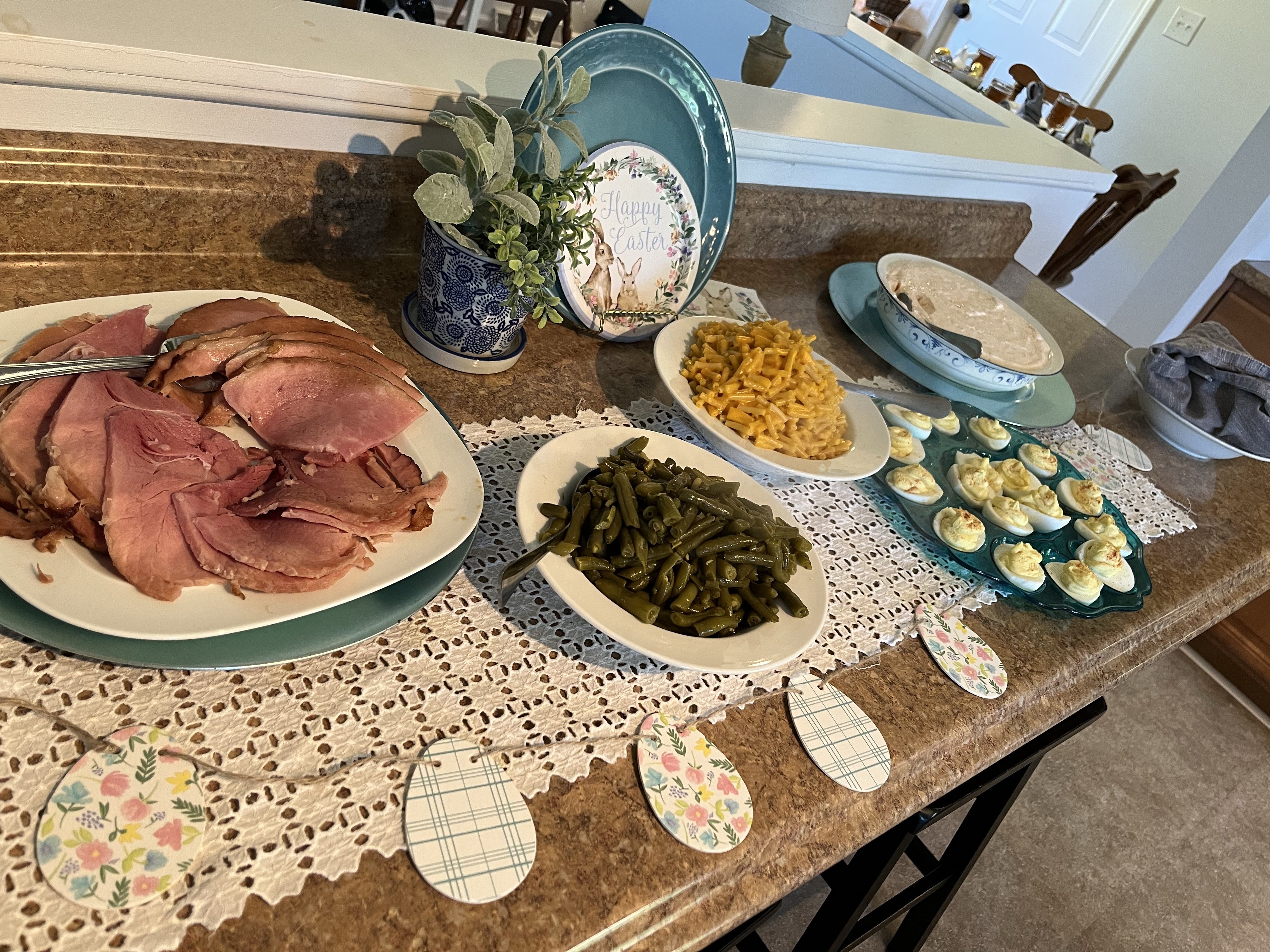 After church we came home to all the Easter dinner favorites, including banana pudding made by our oldest. The younger two got to hunt for eggs in the yard. It was a good day and lots of memories were made.