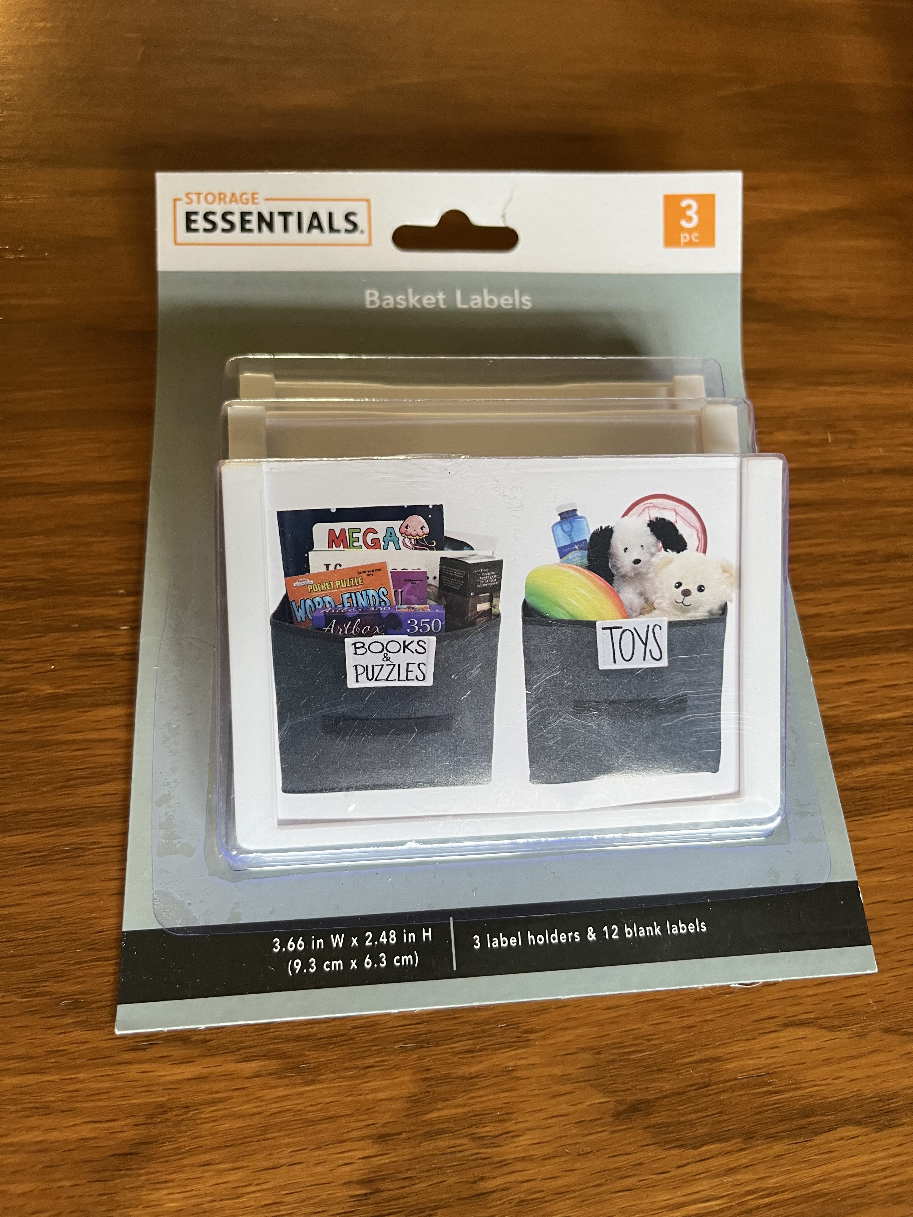 How nice is this 3-pack of clip on label holders? These are perfect for fabric or wire baskets. Each label holder comes with 4 blank label inserts all ready to go.