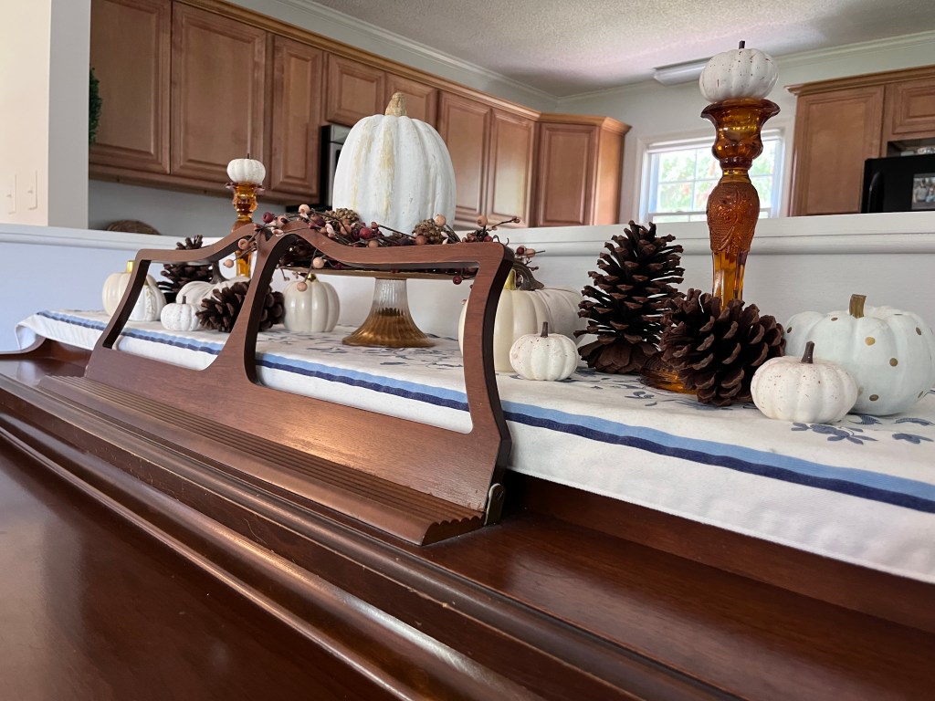 I always begin my decorating by referencing inspiration photos that I can copy with what I have in my stash. This Instagram post inspired the display on top of my piano.