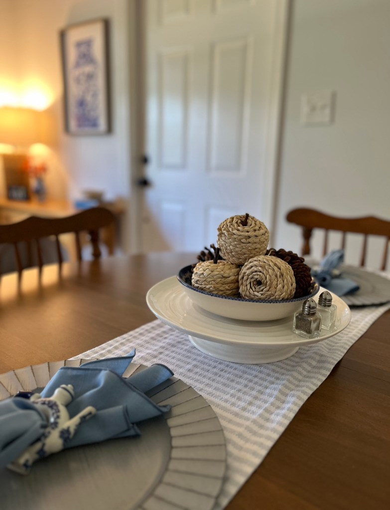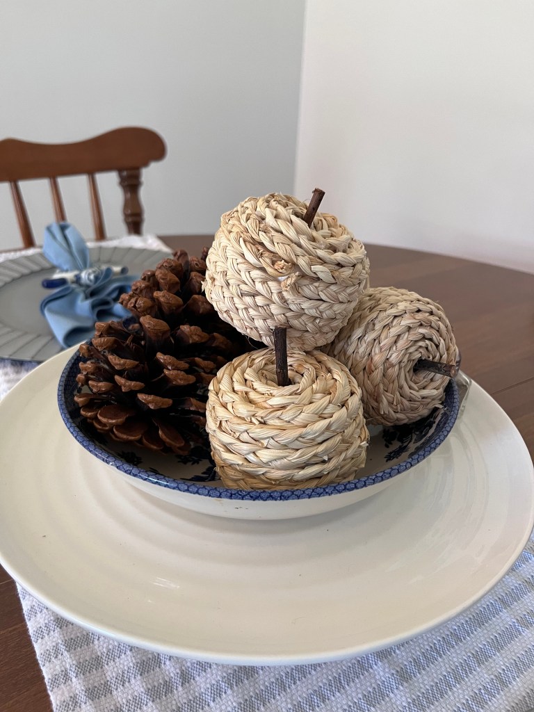 I spent $5 on new decor, all from the Dollar Tree. Over the years I’ve built a good stash of items that I enjoy “shopping” as I decorate. I never use all of it, just the pieces that work with my current theme.
