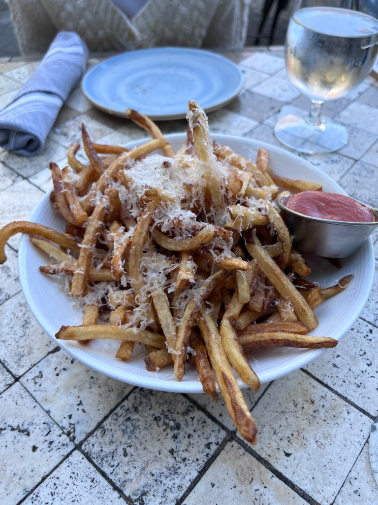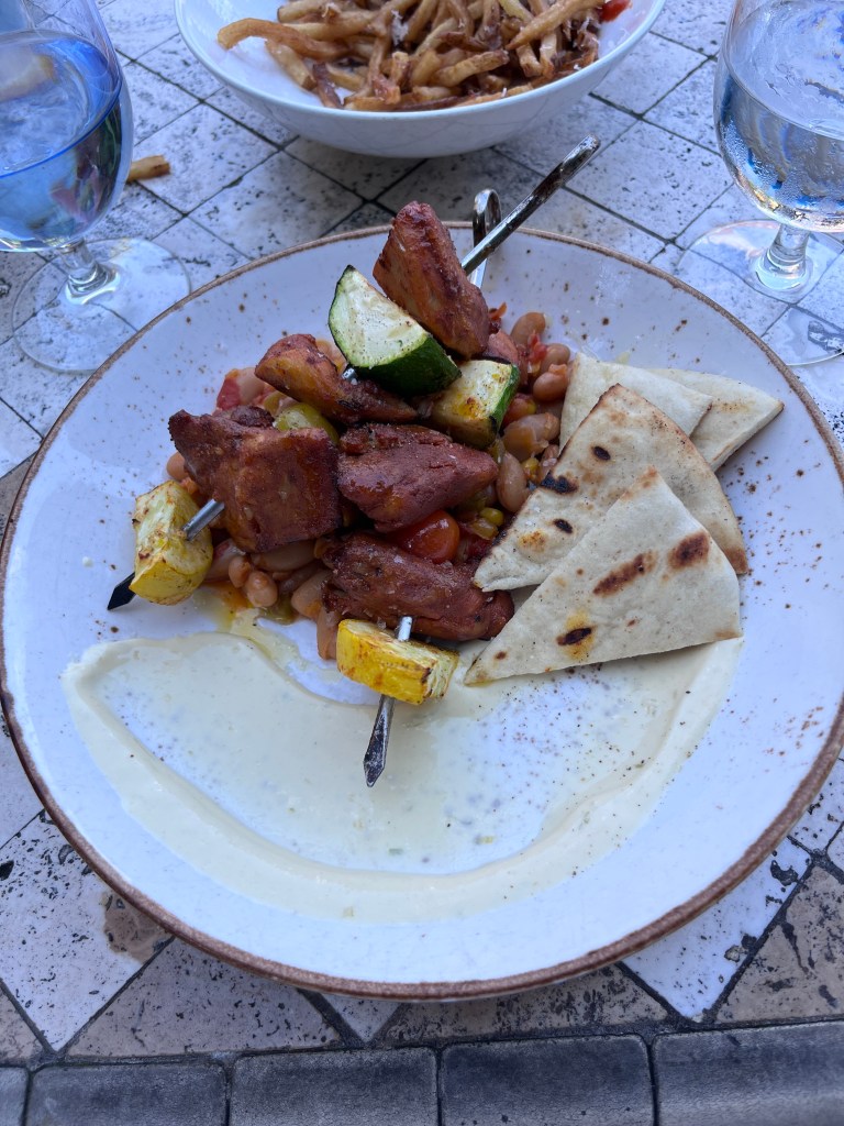 Our lunch at Lazy Goat was a highlight of the trip. We made reservations and got a table outside overlooking the river. The truffle fries and prime rib sandwich were top favorites, but my Greek souvlaki dish was very delicious too.