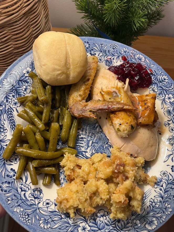 - Roast Chicken, Stovetop Cornbread Stuffing, Southern Green Beans, Cranberry Sauce