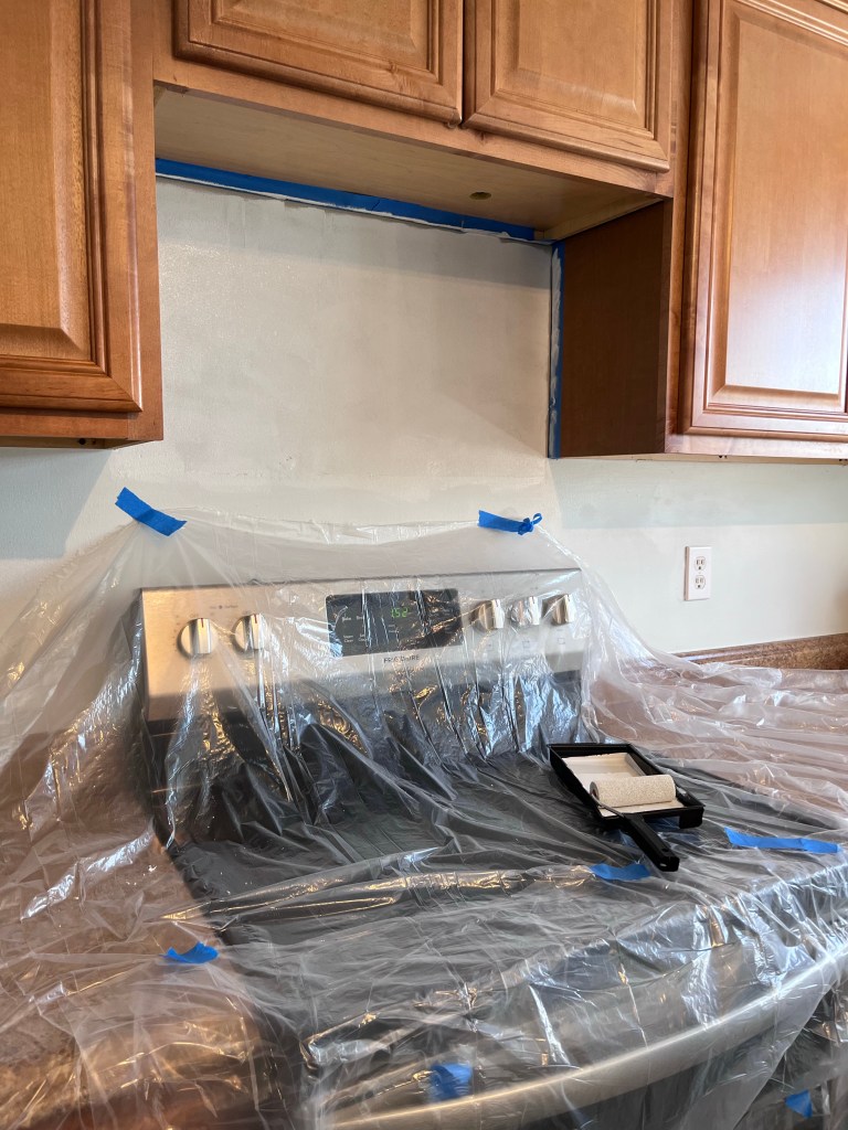 2 – Dollar Tree is another great place to pick up painting supplies. I like their drop cloths. They also have a little kit that comes with a mini roller, brush, and paint tray. It’s perfect for little jobs – this is what I used when I painted the little area above my stove where the microwave used to be.