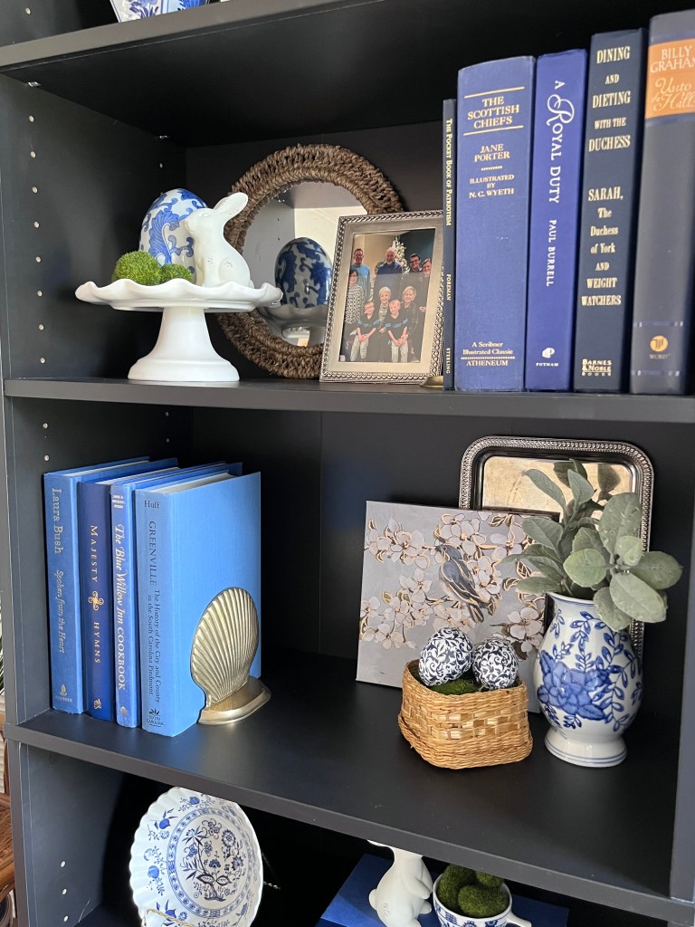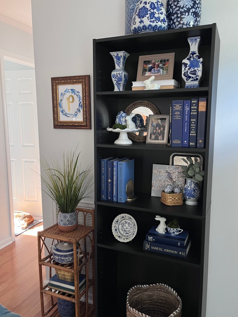 I love this black book case, but it shows every speck of dust. I dusted the shelves literally minutes before taking these pictures!