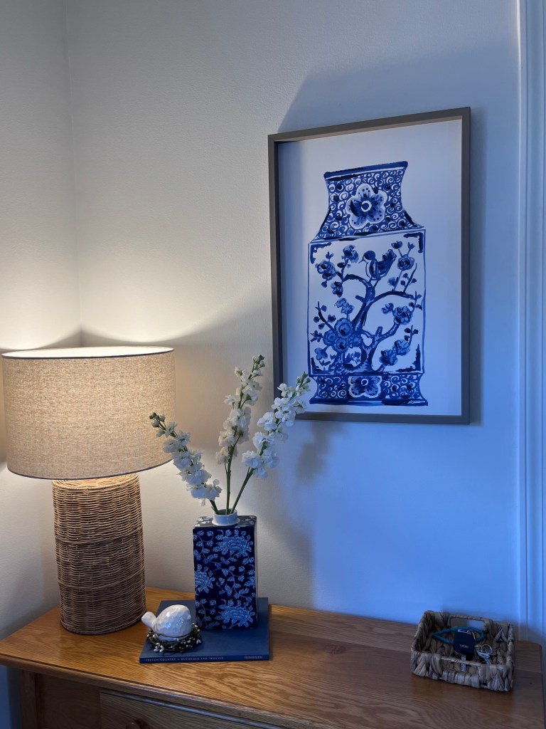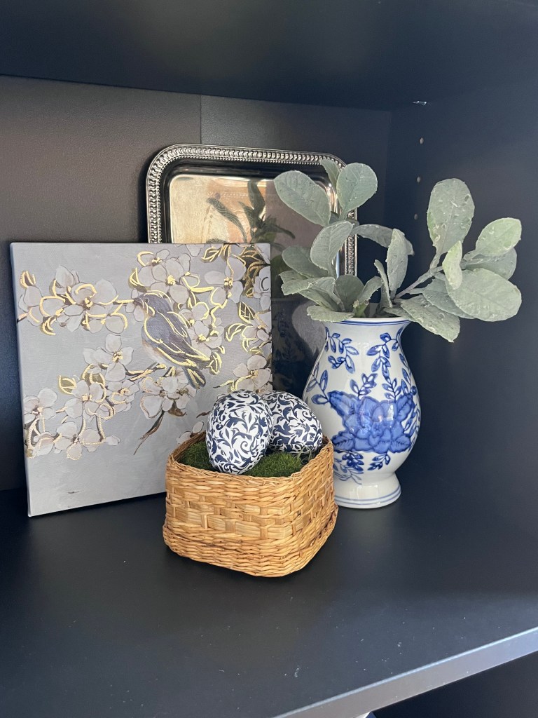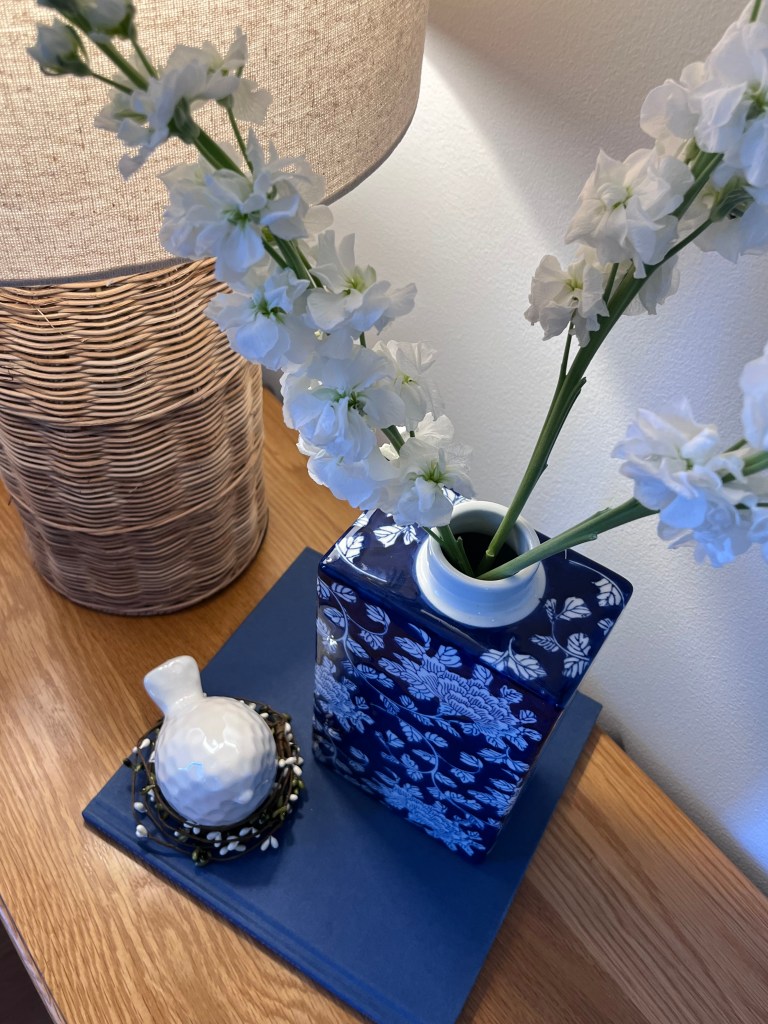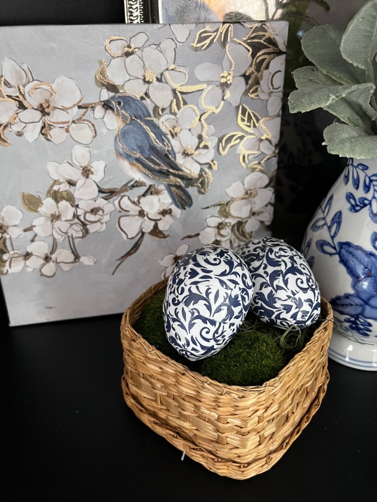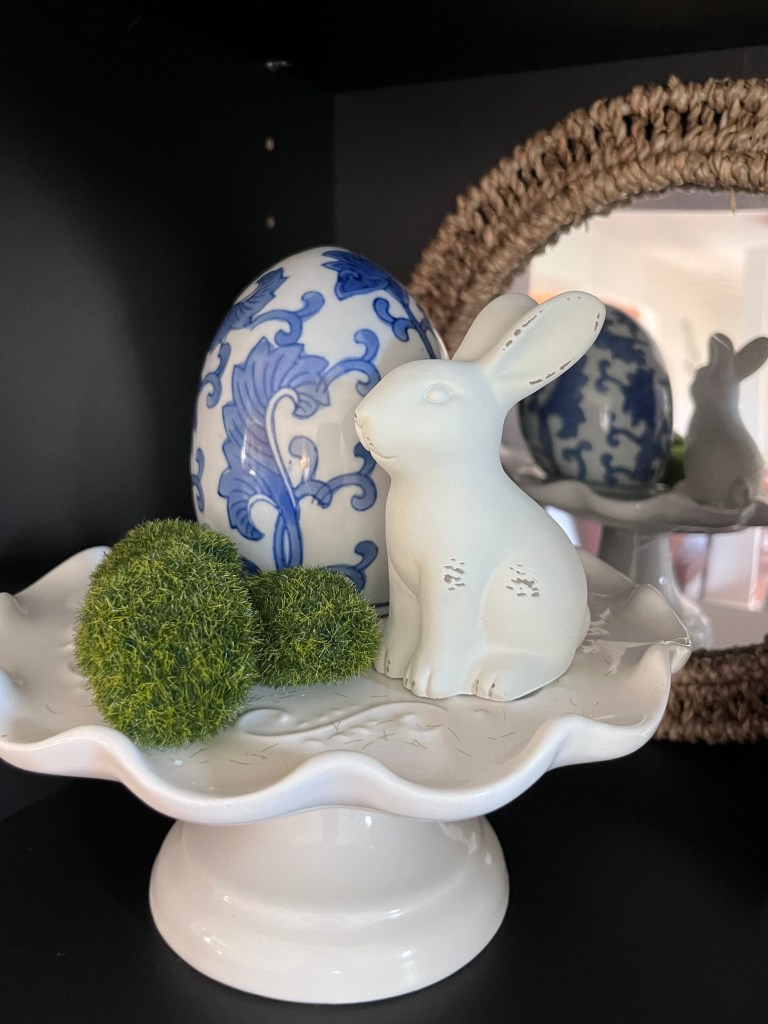 I’ve really come to love decorating for spring. It’s fun to lighten up all the pieces I used during the winter with classic pieces that are still in my blue/white/green palette.