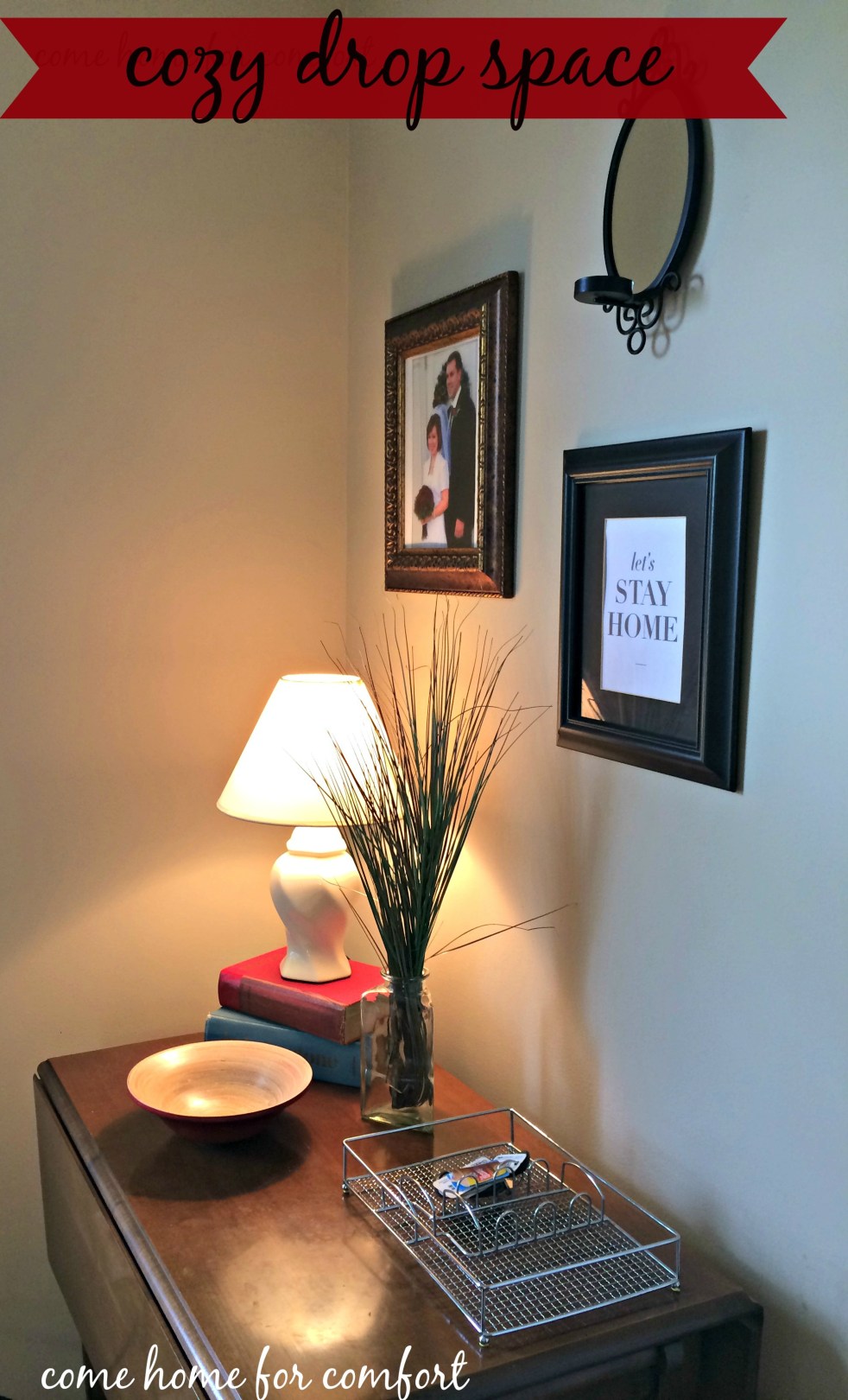 I love having a place right inside the door where we can drop our keys, mail and sunglasses as soon as we enter the house. Hence the name, "drop space." I created this cozy area next to the carport door and I'm in love with it! The light from the lamp really warms up… Continue reading My Cozy Drop Space