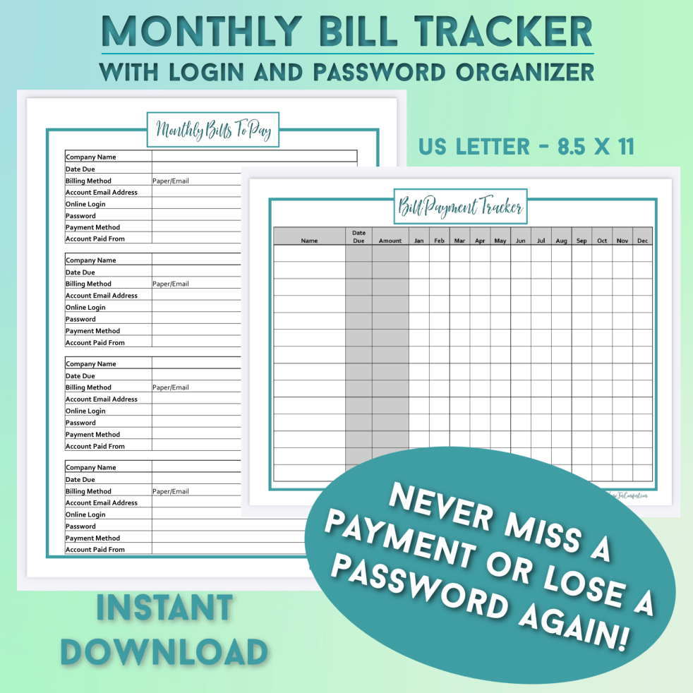 How frustrating is it when you try to log in and pay a bill, but you can't remember the password? Have you ever missed a monthly payment because the electronic bill got lost in your inbox? I have the solution for you! What would happen if the designated bill-payer in your home was suddenly unable… Continue reading Bill Payment Checklist with Password Organizer