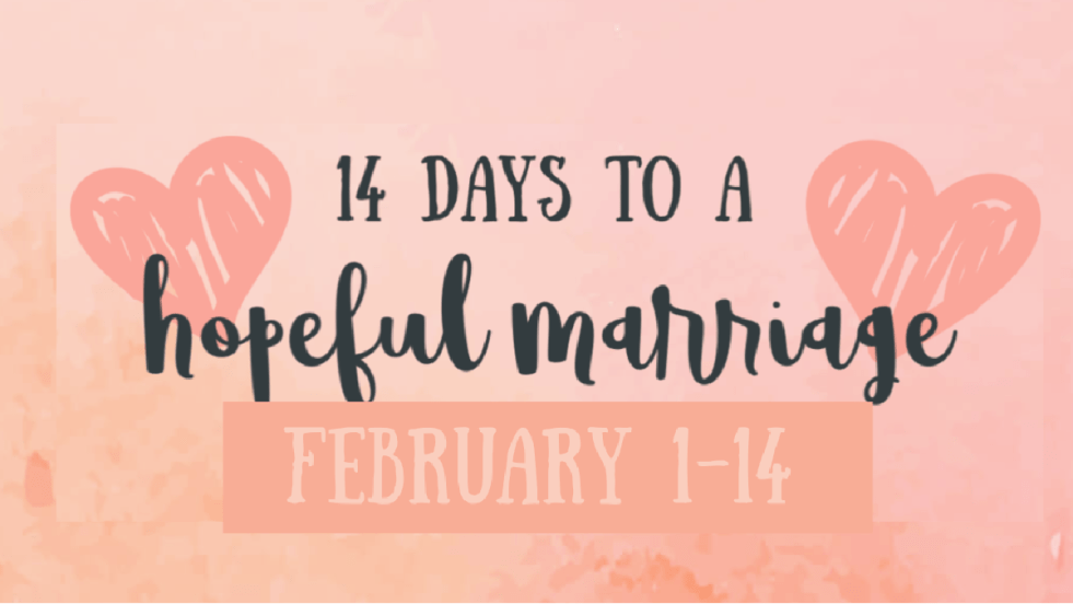Last week Paul and I celebrated the 12 year anniversary of our first date. We were married less than 11 months later! The fact that we are still married, still dating, and still smiling at each other is not a testimony to his greatness as a husband or my greatness as a wife. It's not… Continue reading 14 Days To A Hopeful Marriage